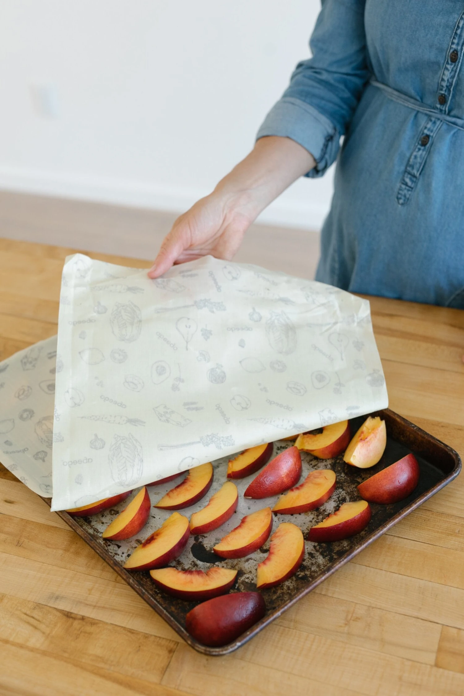 Ingen vet sikkert hvor lang tid det tar for plast å brytes ned i naturen, men forskere anslår mellom 20 og 1000 år. Nå kan du spare både deg selv og naturen for plast ved å pakke maten din i Abeego – praktiske matomslag laget av tynn, økologisk bomull og hamp. Arkene er innsatt med bivoks, harpiks og jojobaolje – alle naturlige konserveringsmidler. Abeego er formbar ved romtemperatur og stivner i kjølskapet, noe som gjør at formen holder seg perfekt til du pakker ut maten igjen. Passer perfekt til oppbevaring av ost, grønnsaker, frukt, brød, osv.