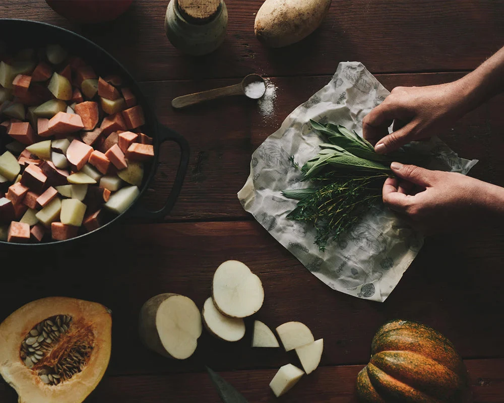 Ingen vet sikkert hvor lang tid det tar for plast å brytes ned i naturen, men forskere anslår mellom 20 og 1000 år. Nå kan du spare både deg selv og naturen for plast ved å pakke maten din i Abeego – praktiske matomslag laget av tynn, økologisk bomull og hamp. Arkene er innsatt med bivoks, harpiks og jojobaolje – alle naturlige konserveringsmidler. Abeego er formbar ved romtemperatur og stivner i kjølskapet, noe som gjør at formen holder seg perfekt til du pakker ut maten igjen. Passer perfekt til oppbevaring av ost, grønnsaker, frukt, brød, osv.