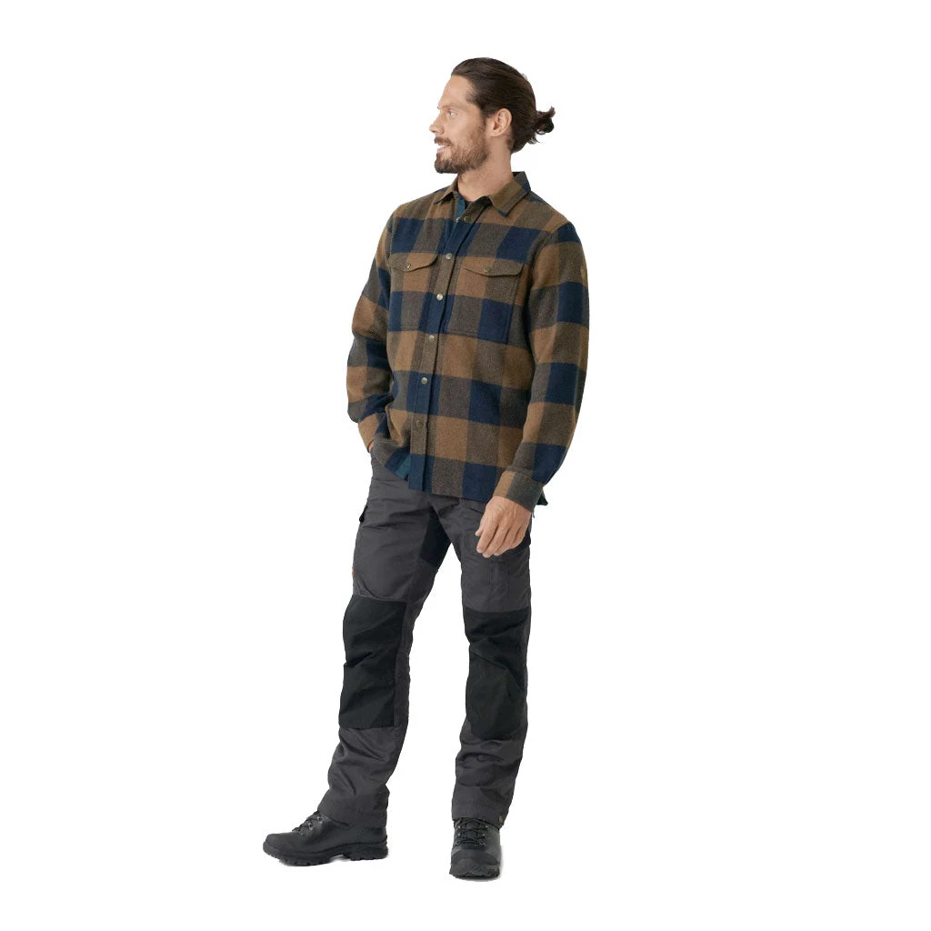EGENSKAPER Type: Flanellskjorte (herre) Består av: Flanellskjorte i resirkulert ull, akryl og polyester, trykknapper Bruk: Vinterhalvåret Spesielle egenskaper: Ull er naturlig temperaturregulerende, fukttransporterende og luktresistent. Krever sjelden vask. Merknader: MATERIALER Materiale: 45% Akryl / 25% Polyamid / 25% Ull Materiale detalj: Logo på venstre arm i skinn MÅL OG VEKT Passform: Normal, men romslig. Kan også brukes som overskjorte. Mål (Diameter, Høyde): Se størrelsesguide! Vekt: 600 g (M) STØRRELSESGUIDE