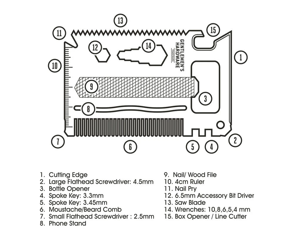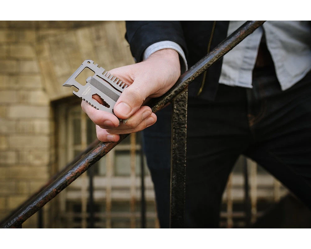 Kredittkortverktøyet fra Gentlemen’s Hardware inneholder hele 15 praktiske verktøy og tar like liten plass som et kredittkort.