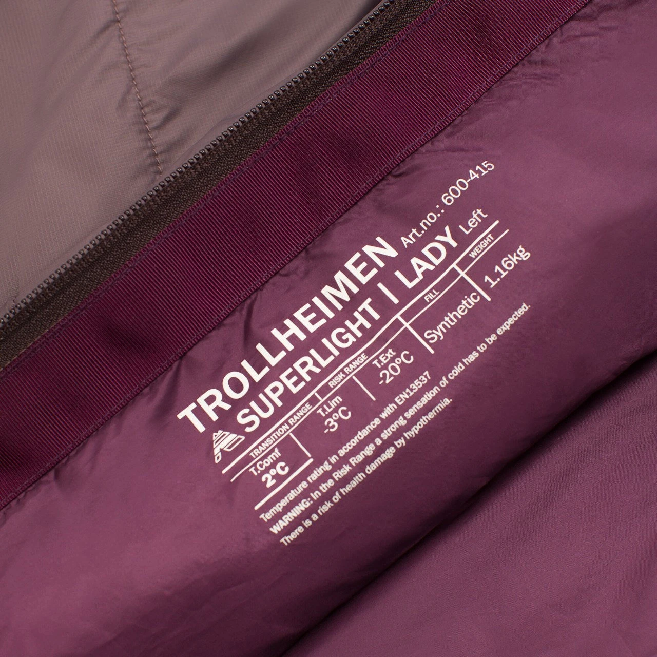 Trollheimen Superlight Winter Lady er en lett, komprimerbar og varmeeffektiv fibersovepose for dame med komforttemratur på -9°C. Thermolite T3 Ecomade-fiber materiale gir økt isolasjon og god pusteevne. Soveposen er laget med shingel konstruksjon hvor syntetiske lag overlapper hverandre og man unngår parallelle sømmer og kuldebroer.