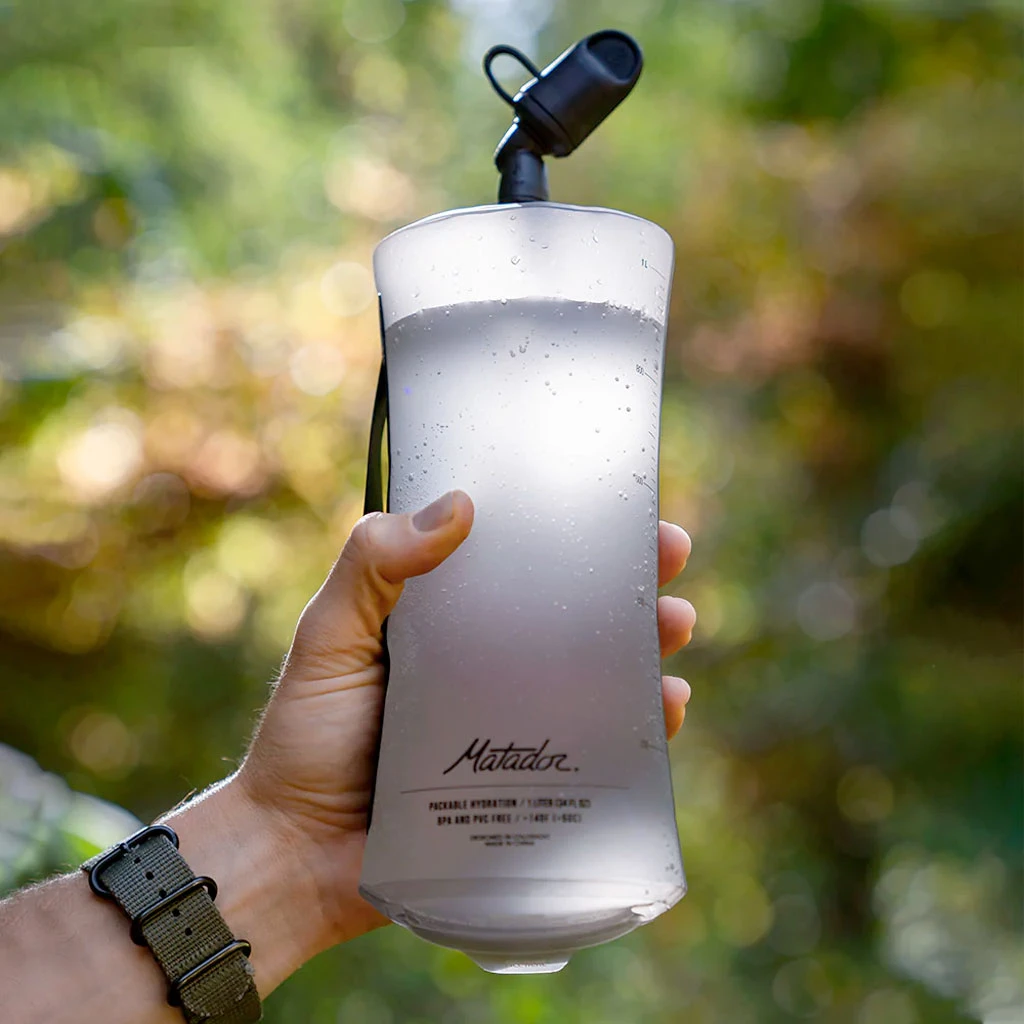 The 1 liter Packable Water Bottle is designed to stay by your side from the airport to the mountains, without taking up unnecessary space.