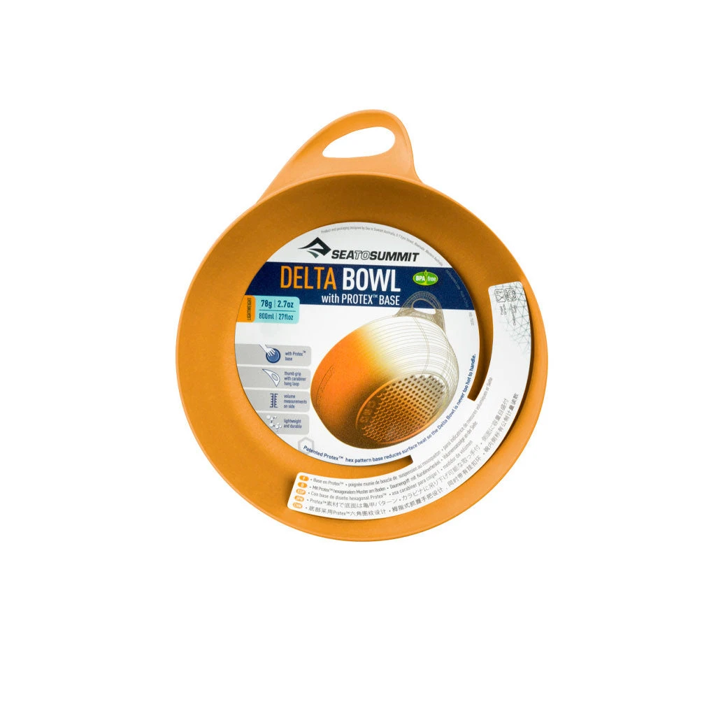 EGENSKAPER Varenavn: Sea To Summit Delta Bowl Type: Turskål Består av: Turskål på 16 cm Bruk: Tur, piknik Spesielle egenskaper: Superlett Merknader: MATERIALER Materiale tallerken: 100% copolyester (BPA-fri) Farge: Orange, Grey MÅL OG VEKT Mål (Ø): 16 cm / 800 ml Vekt: 78 g -