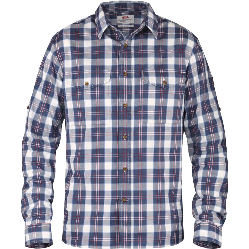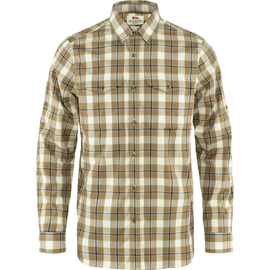 Passformen er normal, med knapper langs midten, to brystlommer med knappelås, og lange ermer med to knapper slik at du kan rulle dem opp. Nedekanten er i klassisk stil lett buet. En liten og subtil Fjellreven symbollogo i form av en skinnflik sitter på venstre skulder. En nesten usynlig hempe bak i nakken brukes som oppheng. Materialet er laget i en plaid med ruter i både komplimenterende farger og med kontrasterende linjer. Stoffet er mykt, og i denne utgaven produsert med 91% bomull med 9% ull for ekstra varme og fine naturlige egenskaper.