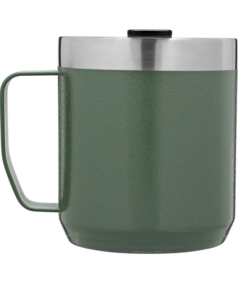 Dette er en solid drikkekopp med lokk. Koppen er vakuumisolert, slik at innholdet holder seg varmt i 1,5 timer eller kald i 3 timer. Den har et lekkasjesikkert lokk, som enkelt kan åpnes og lukkes med én hånd. Koppen kan vaskes i oppvaskmaskin. Koppen er laget i kraftig rustfritt stål, og er naturlig BPA- fri. Volum: 0, 35 liter. Den kommer i klassisk Stanley – grønn (Hammertone Green) eller matt sort.
