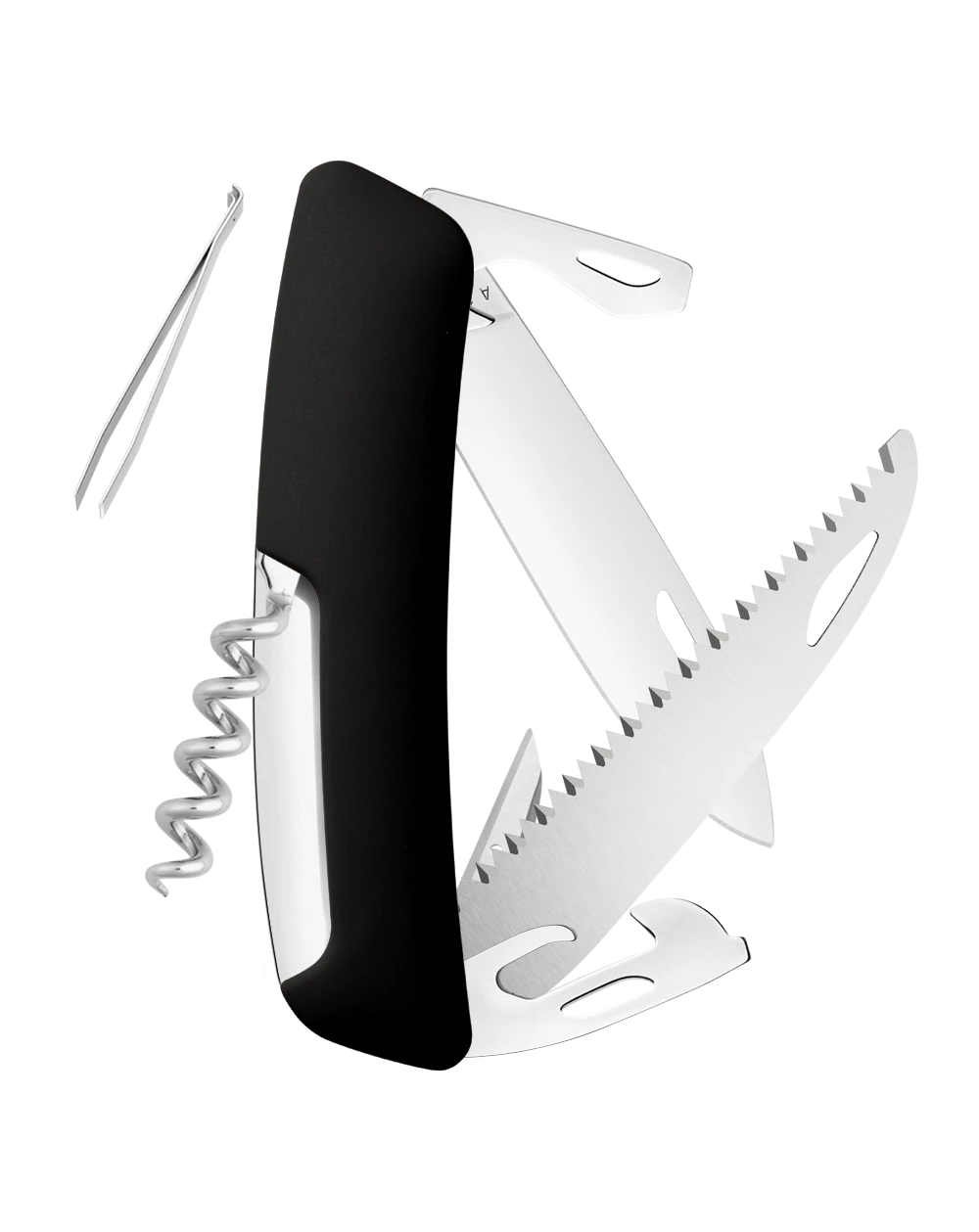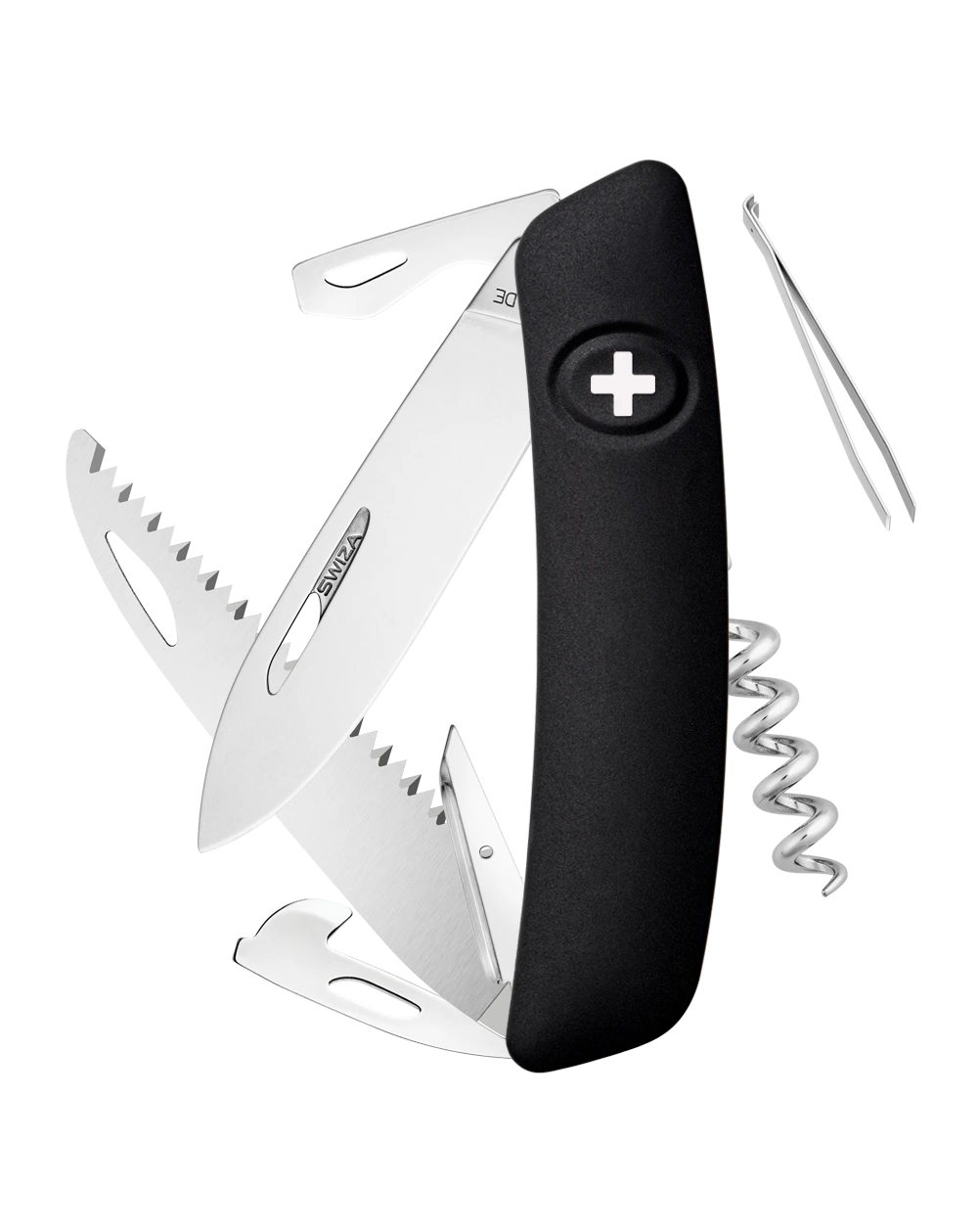Safety: Blade with safety lock to prevent from closing when working. The blade can be unlocked by pressing the SWIZA cross.