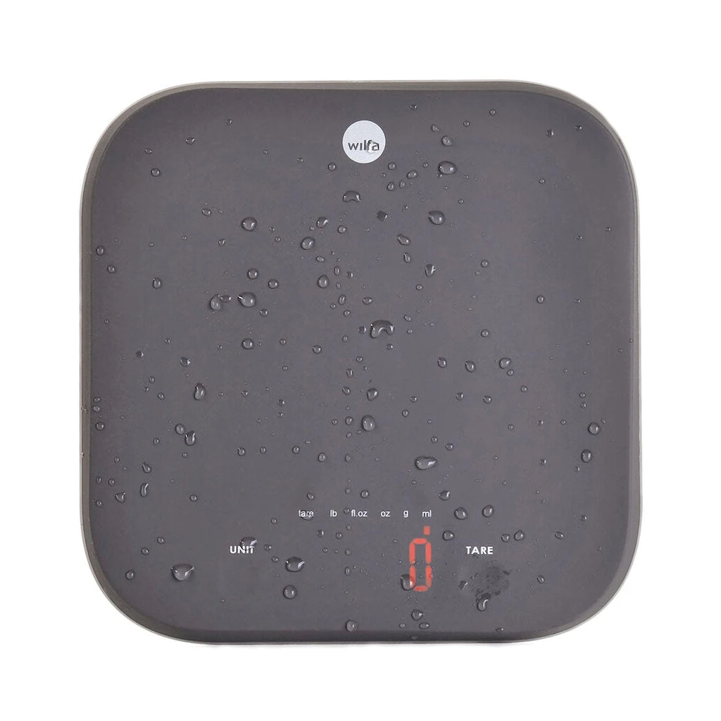 Dette er en kjøkkenvekt som er skapt for kjøkkenet, belagt i et vanntett silikonbelegg som i tillegg til å motstå vann også bidrar til å holde tingene du setter på den stødig og sikkert. Om den blir grisete, kan hele vekten skylles under krana i oppvaskkummen!